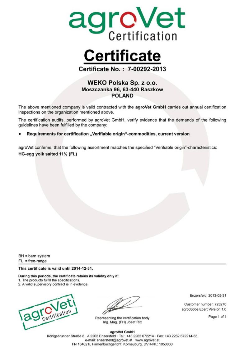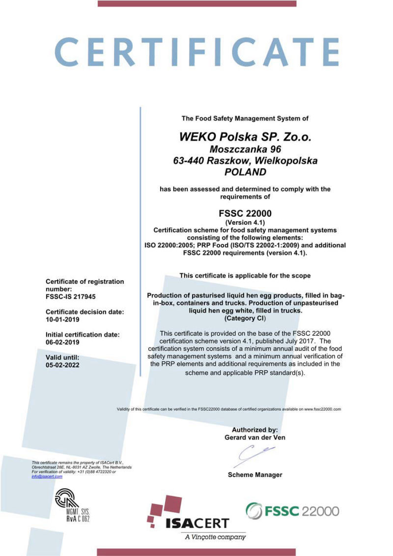 WEKO Polska Sp.z o.o.jest firmą należącą do INTEROVO EGG GROUP B.V. posiadającą wieloletnie doświadczenie w przetwórstwie jaj.